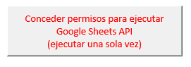 - Como paso inicial, debes conceder tu permiso para que esta aplicación pueda acceder a tus hojas de cálculo en Google Sheets, y modificar aquellas que indiques. Para conceder este permiso, da click en el botón con letras en rojo: