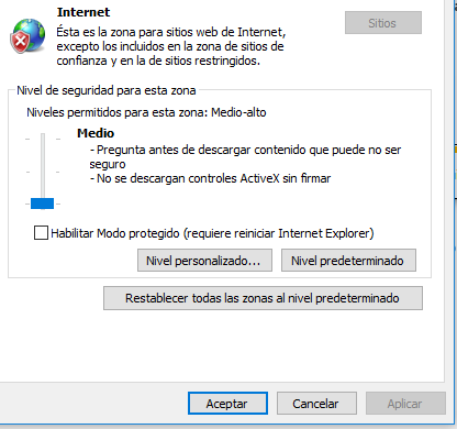 - La ventana desaparece. Los permisos fueron concedidos. Si tuvieras algún problema o mensaje de error,ve a las opciones de internet y reduce el nivel de seguridad para que permita la ejecución de esta aplicación. Funciona bien con niveles medio y medio bajo.